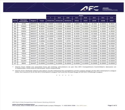 日本、韓國、阿聯(lián)酋3國聯(lián)賽分列第2至第4位,同樣與2024/2025賽季全季排名保持一致。伊朗聯(lián)賽力壓卡塔爾聯(lián)賽排在第5位,后者排在第6位。而印尼聯(lián)賽是所有會員協(xié)會聯(lián)賽中排名上升幅度最高者,他們由之前的第25位提升7位,至第18位。