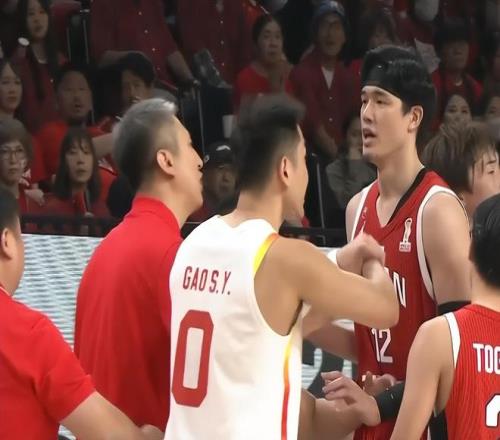 比賽進入最后1分鐘,廖三寧在對手的持續(xù)拉拽之下突破上籃得分,中國男籃領先到了10分,這時候裁判終于褪去了外套,正式披上了日本男籃的隱形球衣,中國男籃5打8正式開始了。